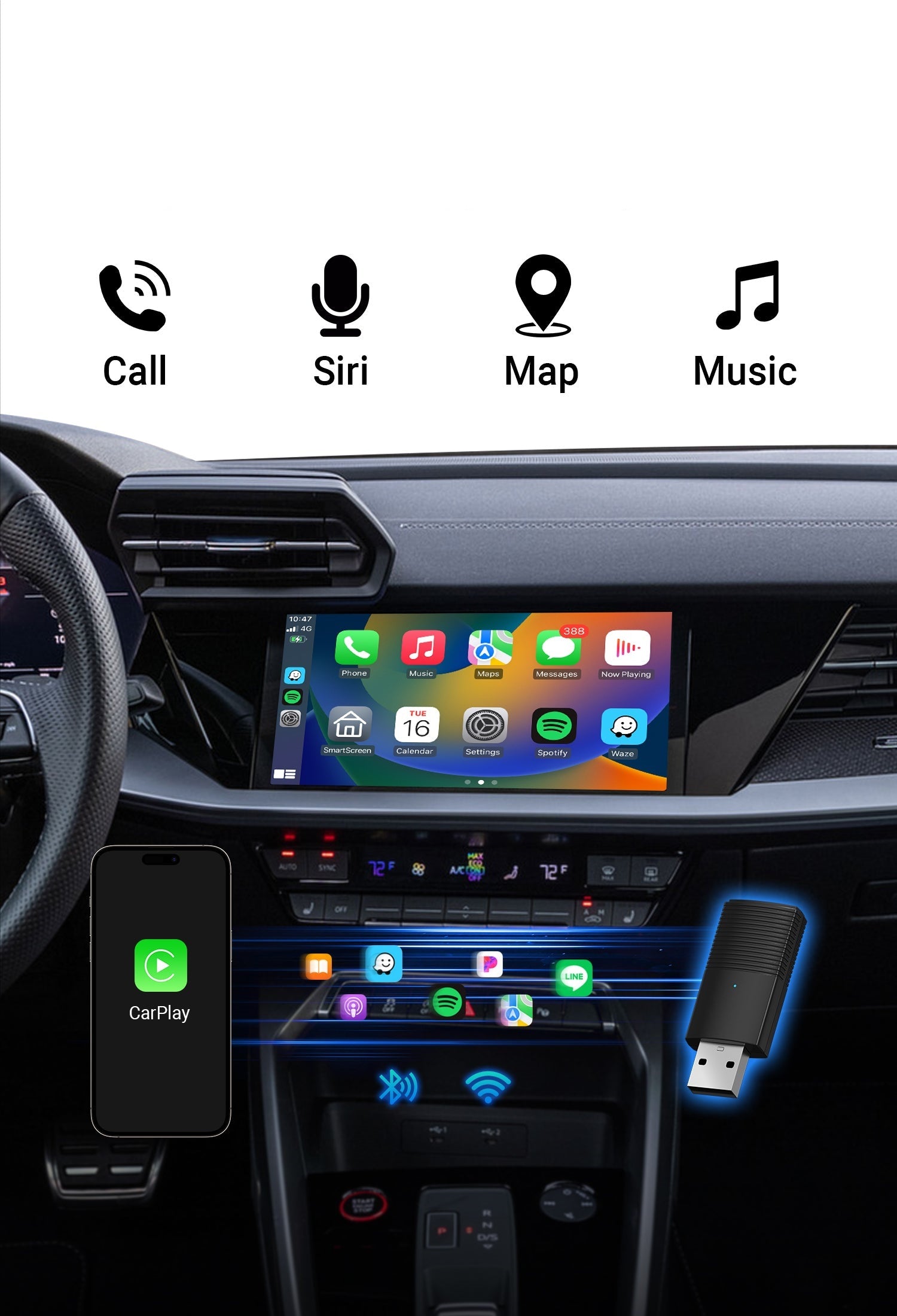 ✔Perfect play: stable and uninterrupted CarPlay experience